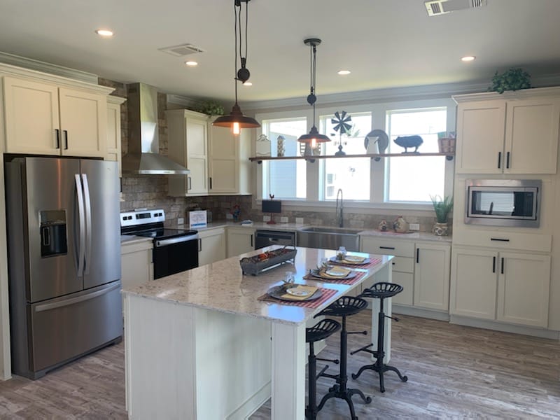 This beautifully designed farmhouse exterior has an optional full back porch that make this modern floor plan perfect for relaxed living. The kitchen boasts of a large island perfect for barstools. There is a parlor and living room along with 2 bedrooms and 2 baths. This home is a show stopper!